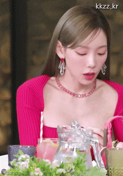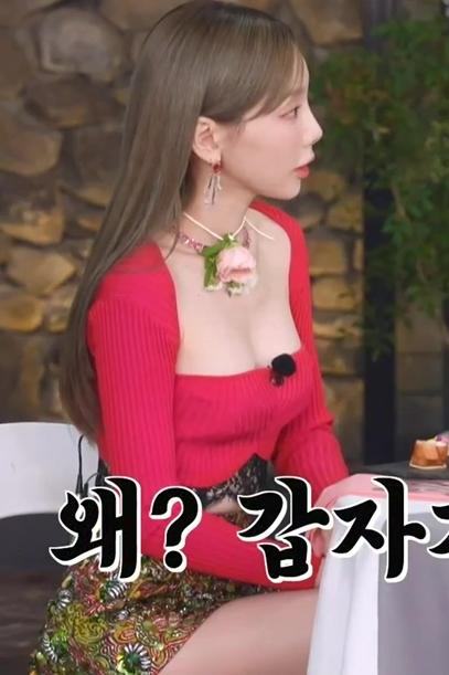 태연 가슴 파인 레드 상의. 요즘 노출 의상을