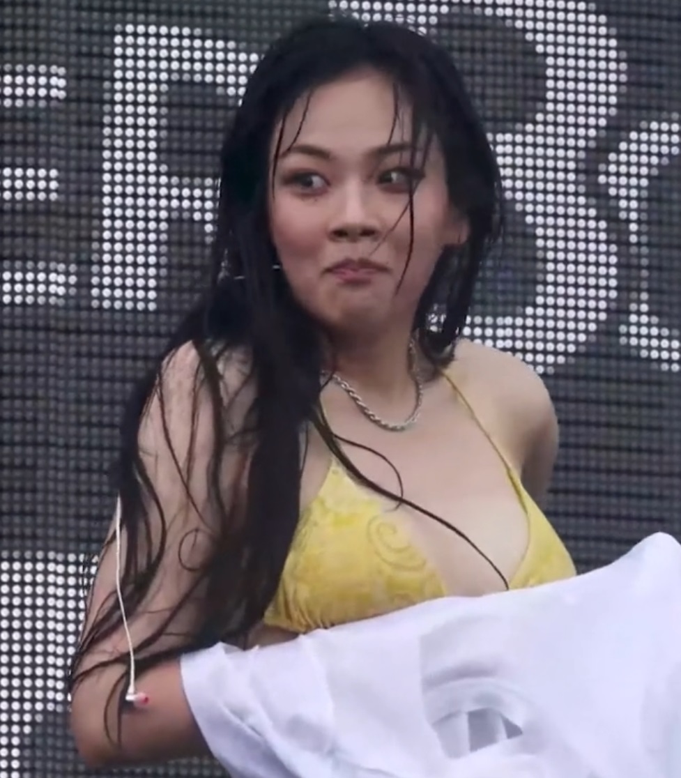 비비 티 안에 비키니를 입고, 워터밤에서 상의를 벗는데 비키니가 같이 끌려서 비비 가슴 노출 위기에 놀라는 비비 워터밤 영상. 그런데 비비 왜케 귀여움.